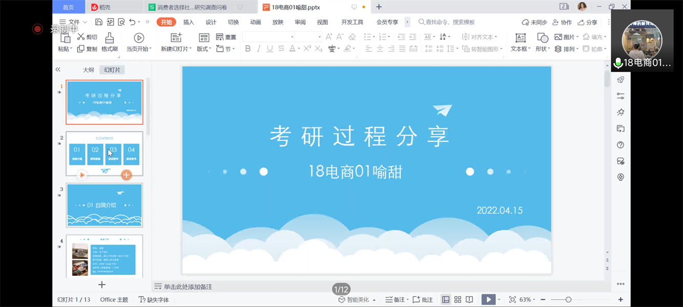随着就业环境对人才素质要求的提高,考研压力日益繁重。为帮助我院考研学子明确学习方向,缓解焦虑心态,williamhill英国统筹安排,联系2022届考研成功学子进行考研交流,预计组织多场考研经验分享系列讲座,第一场于4月15日晚上19:00在腾讯会议上进行。参加本次讲座的有我院就业专干刘阳老师、18级考研成功的朱琳、彭诗佳、喻甜三位同学和积极参与的19、20和21级级同学。