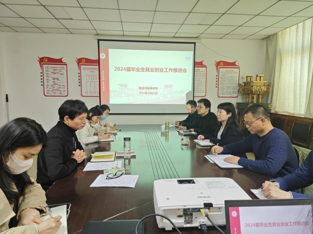 陈书记通报了学院毕业生毕业去向落实情况和考研总体情况,强调:一是要继续坚持全员参与就业,形成上下一心的就业格局;二是要务实重行,分层分类做好学生就业教育引导和就业能力培训,持续提升学生就业能力;三是要充分利用自身资源和积极因素,尽力为毕业生推荐优质岗位,拓宽就业渠道。