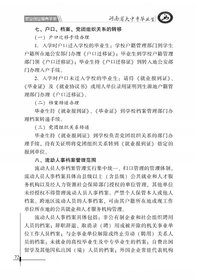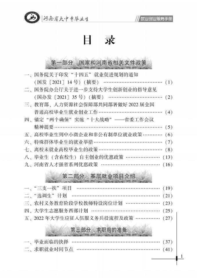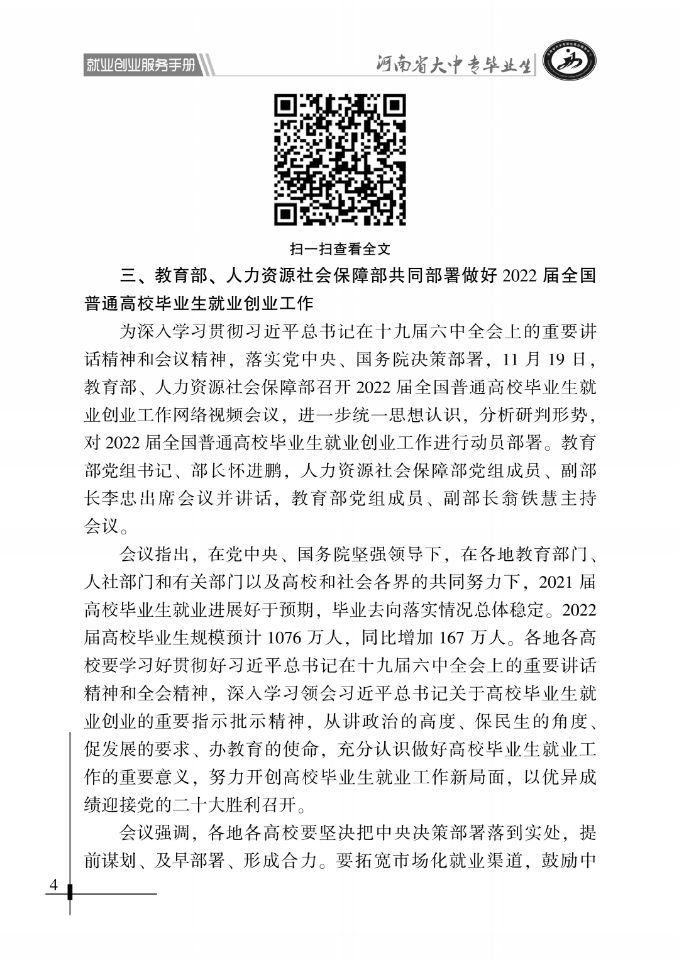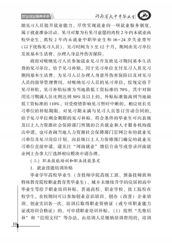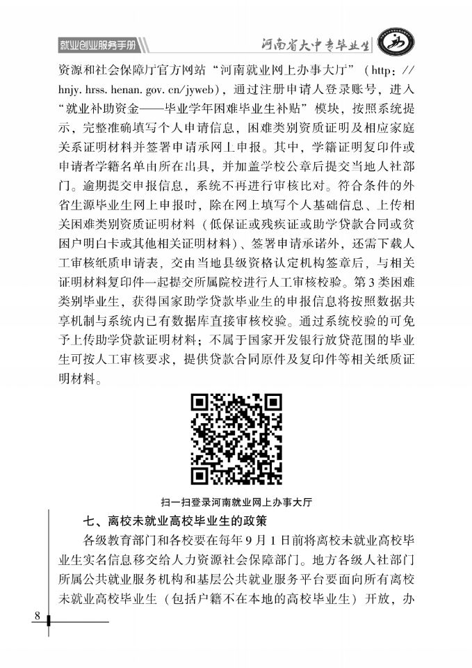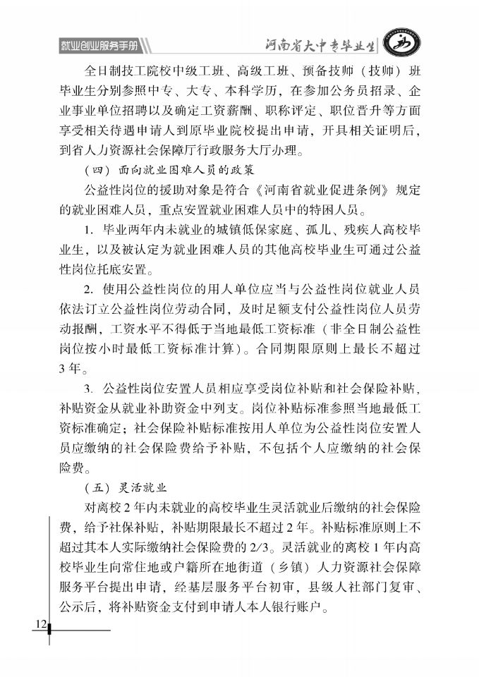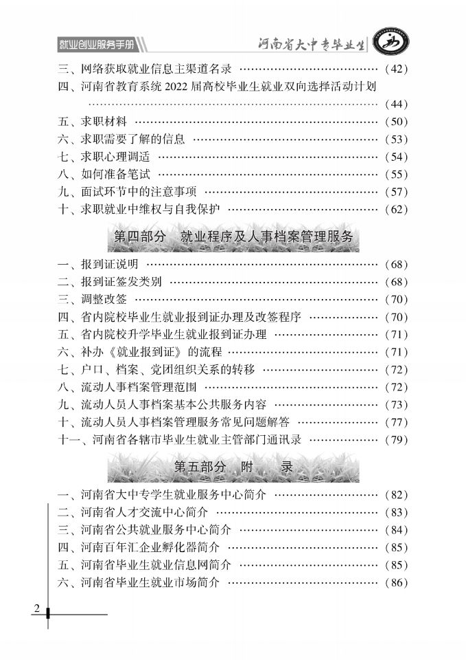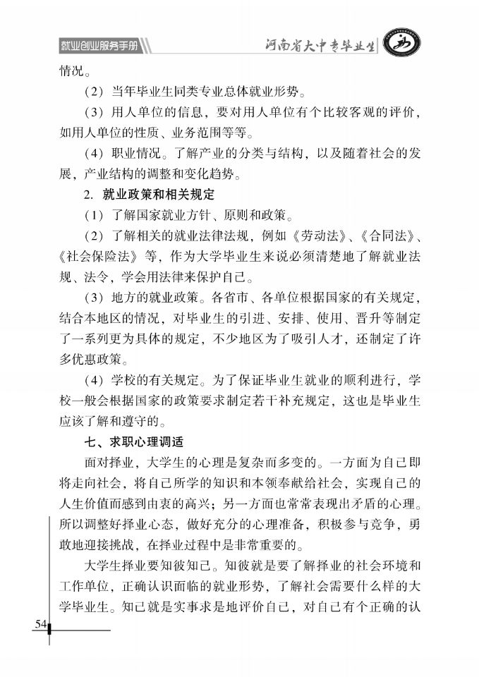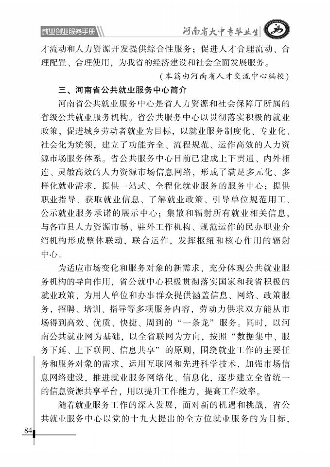 河南省大中专毕业生威廉希尔服务手册(2022年)