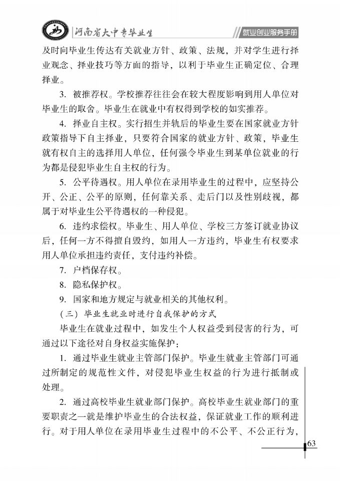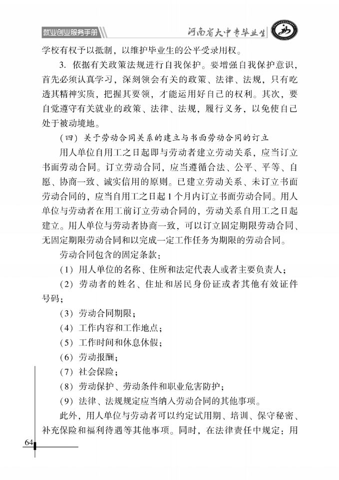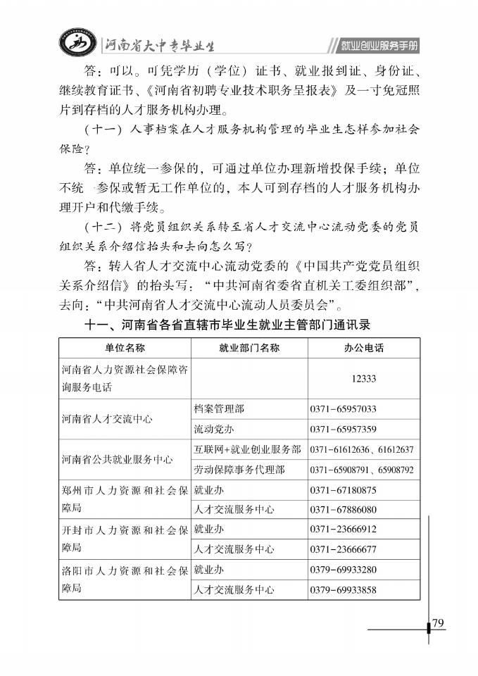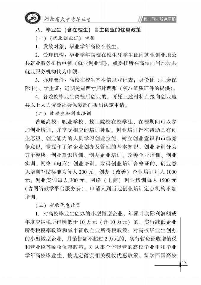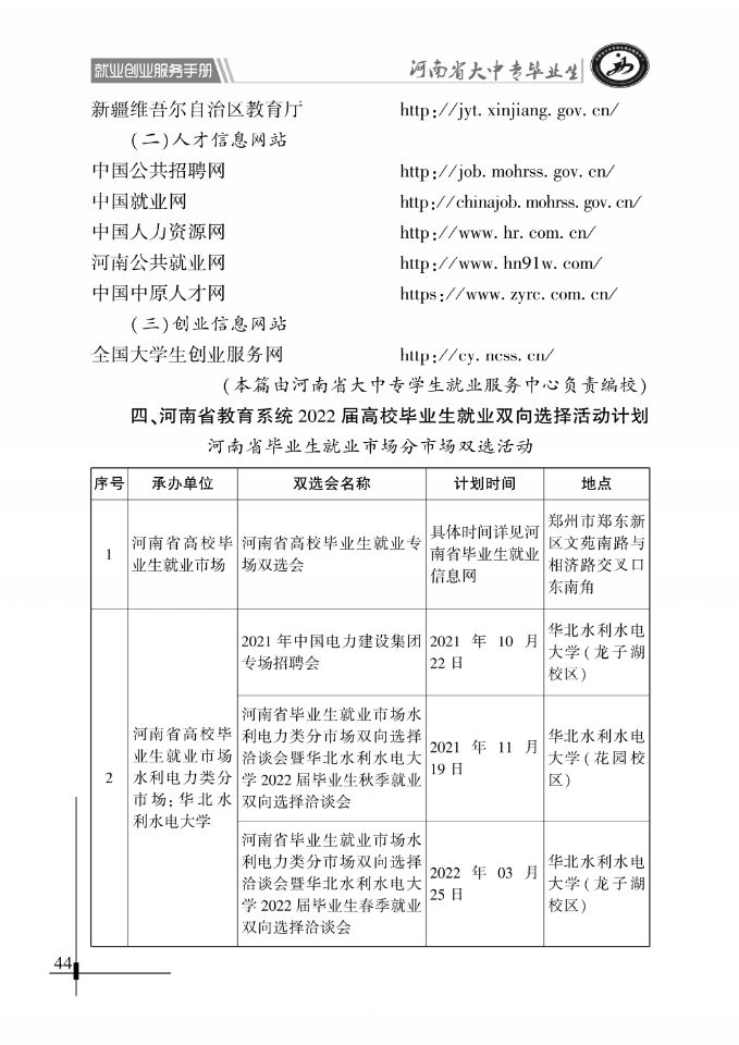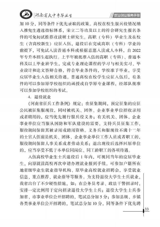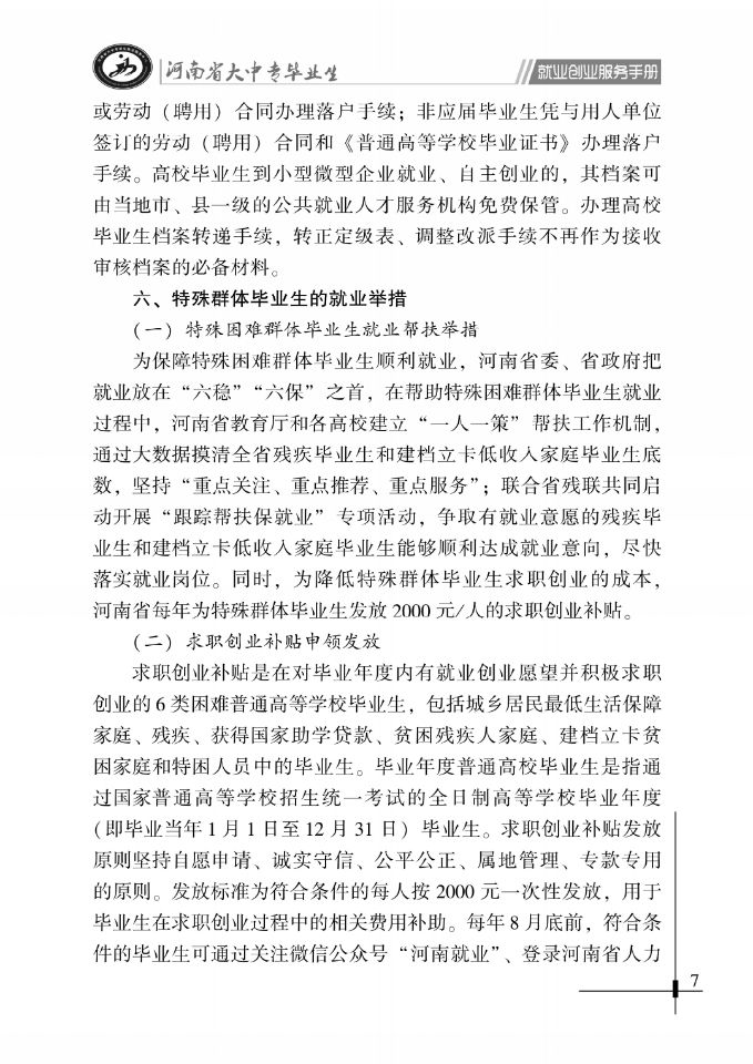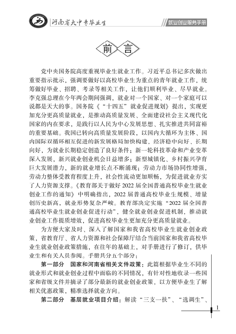 河南省大中专毕业生威廉希尔服务手册(2022年)