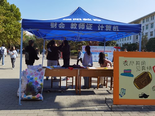 活动开始之前,我院各个部门相互协调,志愿者们分工明确,为此次活动做了充足准备。社实部成员在红色花蕊处搭建了临时帐篷,并安排了四名志愿者值班。活动过程中,前来咨询的学生络绎不绝,志愿者们耐心、积极地为他们解说,并鼓励前来咨询的同学捐赠衣物,捐衣的人逐渐增多,大家都纷纷献上自己的一份爱心。志愿者们对每一位前来捐衣的同学都进行了信息登录,并向他们表示真挚的感谢。最后,值班人员细心地将捐赠的衣物整理后分类装袋,进行了妥善保管。