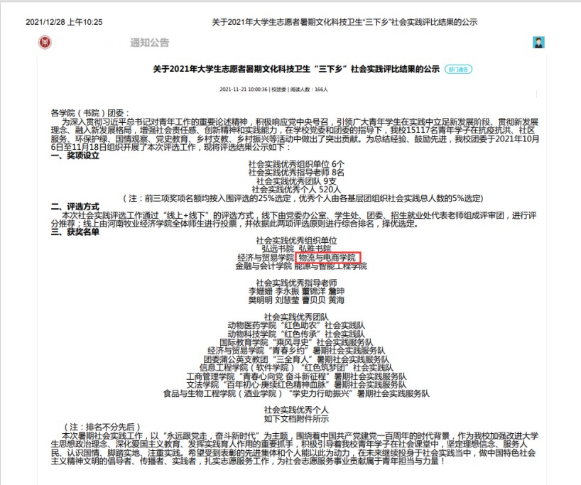 2021年11月被英国威廉集团评为“三下乡社会实践优秀组织单位”