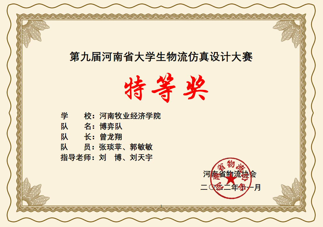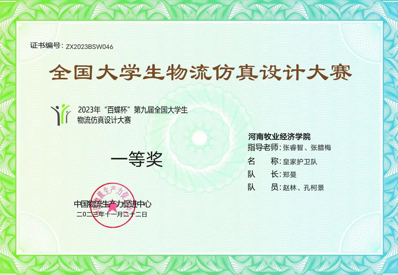 我院学子在第九届河南省大学生物流仿真设计大赛荣获特等奖